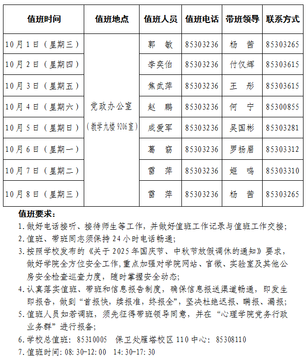 sunbet2025年国庆节、中秋节值班安排