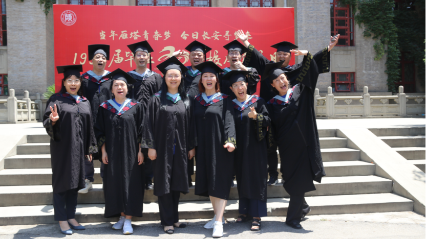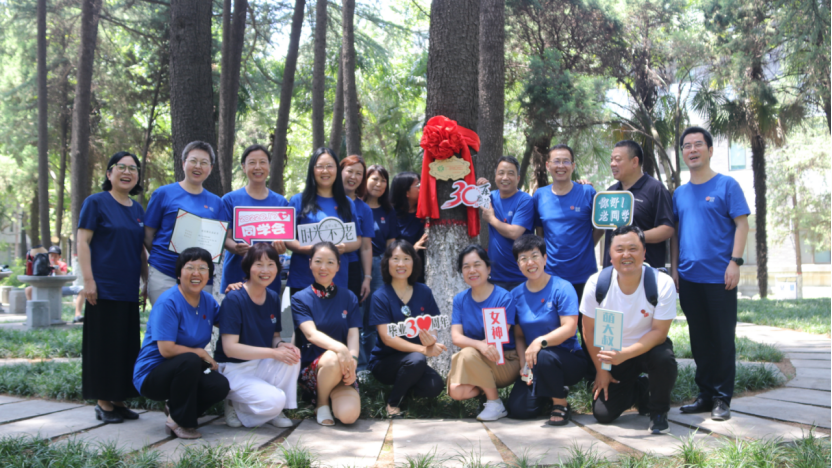 会后,93届员工在员工林举行挂牌仪式并补拍了学位照。