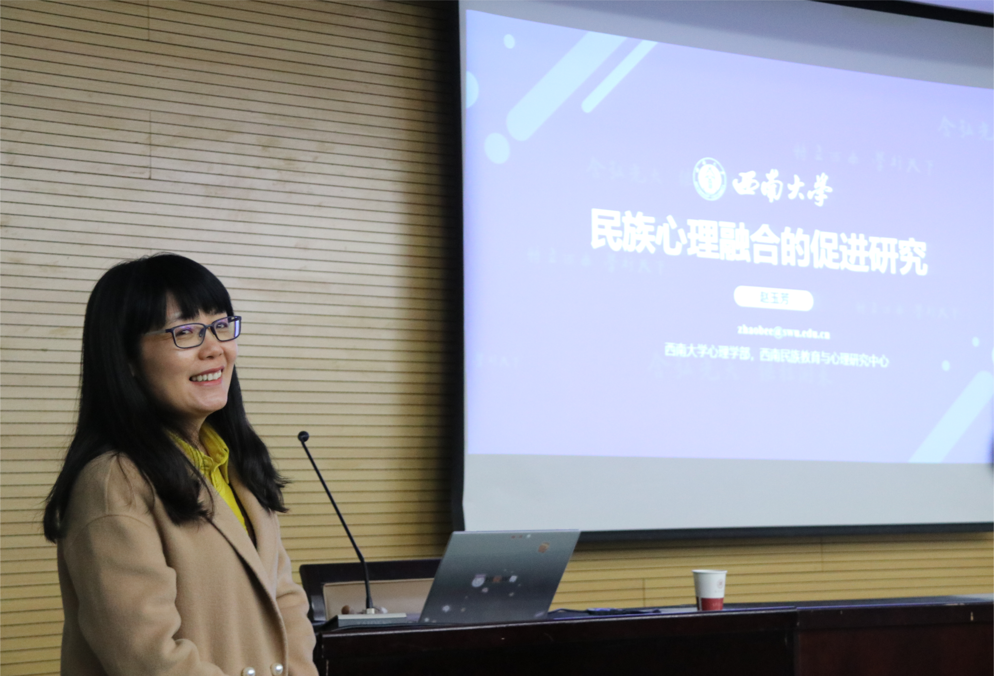 11月29日晚上,“八秩荣光•强师报国”心理学名家系列学术讲座第六期在公司雁塔校区崇鋈楼思齐堂盛大开讲。西南大学赵玉芳教授应邀做了主题为“民族心理融合的促进研究”的学术讲座。sunbet师生到场聆听,讲座现场座无虚席,学术氛围浓厚。讲座由何宁教授主持。