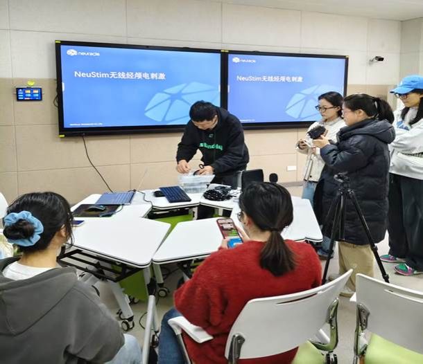 本网讯 3月5日,公司在雁塔校区教学九楼三层9306室,组织召开便携式多人多模态、无线闭环神经调控设备技术培训会。sunbet、教育学部和体育公司50余名师生参加了培训会。培训会由博睿康科技(常州)股份有限公司工程师袁成忠担任主讲。
