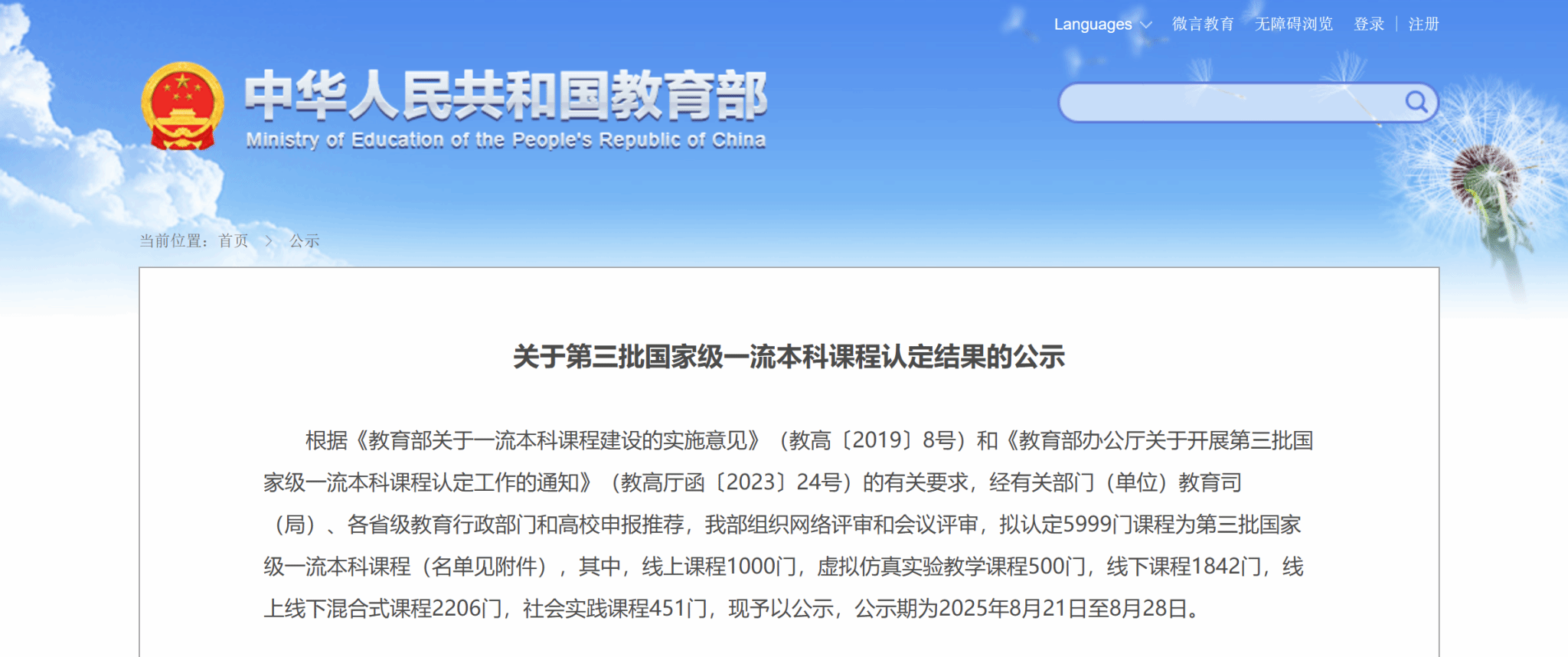 近日,教育部公布了第三批国家级一流本科课程认定结果,公司张丽锦教授主持的教师教育公共课《儿童发展》成功入选国家级线上线下混合式一流课程。